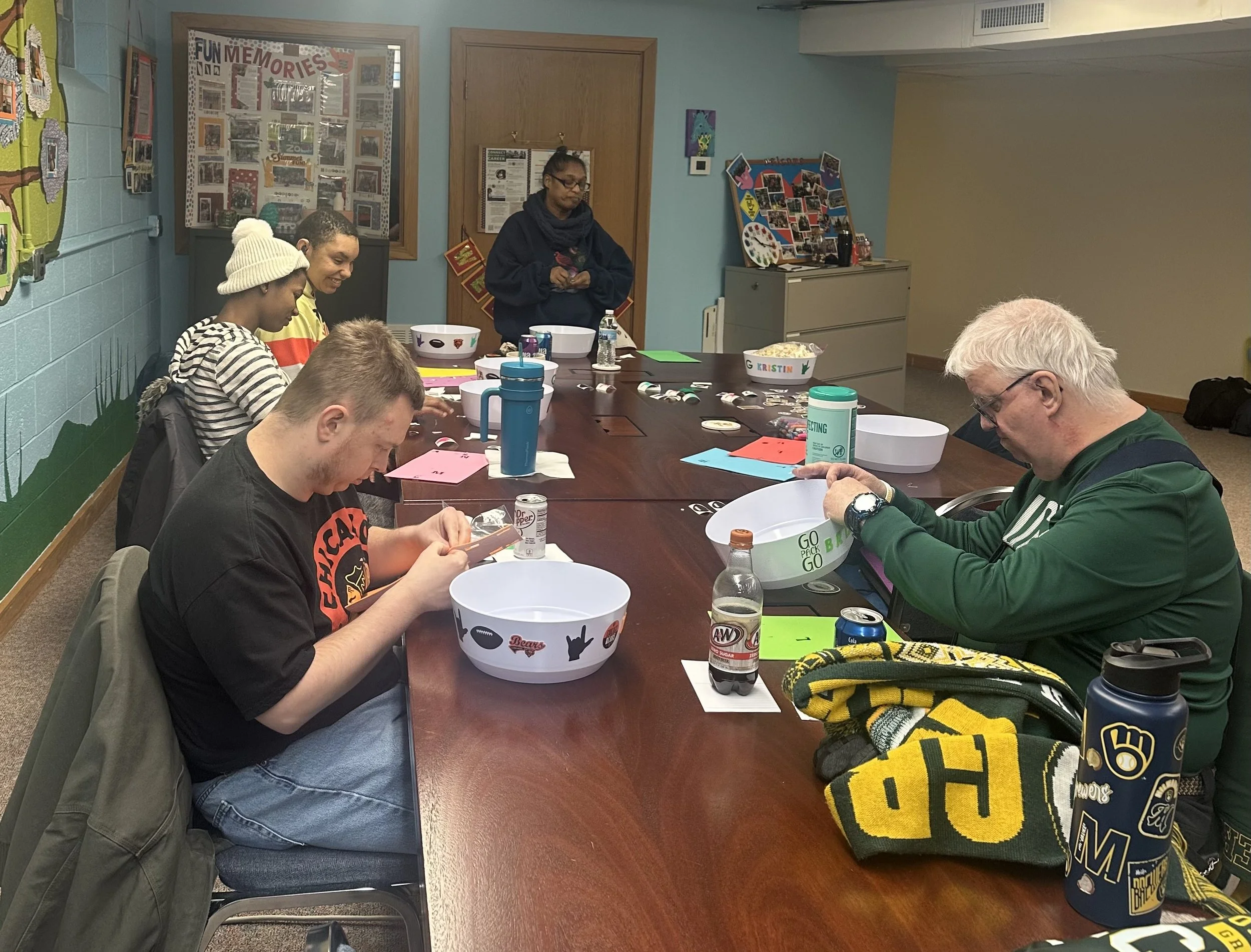 The Community Access for the Deaf class says thank you to Kristin for a FUN art day making Super Bowl hats and decorating popcorn bowls! They all had a lot of fun making their own creations and will definitely enjoy wearing their hats and eating all the popcorn she gave them in their bowls!